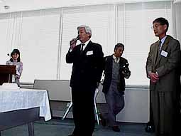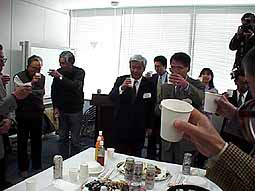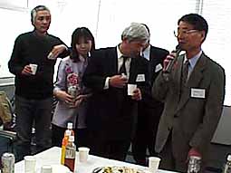 ![]() 成功を祈念して乾杯 | ![]() 「愛される記事を期待する」と細水常務取締役 | |