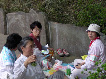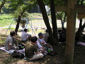 ![]() 八幡神社前で昼食(11:40) |