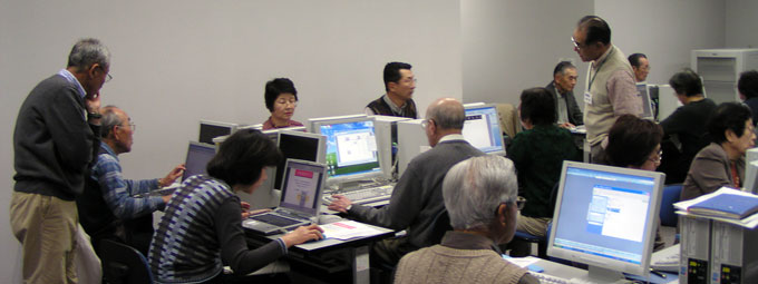 2008年3月27日(木)の午後1時から4時まで横須賀市立生涯学習センターパソコン教室でシニアネット横須賀友の会の会員のための特別講座を開催しました。