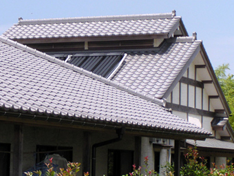 ![]() 鐘楼の間から眺めた太陽熱温水器 (拡大)