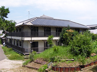 ![]() 修室南側の畑 (太陽光発電 11.6KW) (中央に聖堂)
