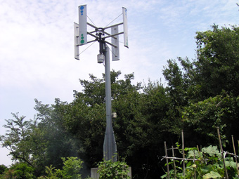 ![]() 風力発電装置 (定格出力 1.36KW) (太陽光発電と合わせて余剰電力は電力会社に売電する) |