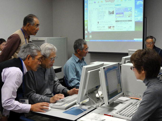 パソコンが初めての60才以上の人が対象で最大16人。講座の内容はパソコンの構成、ハードウェアとソフトウェア、マウスの基本操作、文字入力の練習、文字の大きさとフォント、インターネットの操作法、ワードでちらし作成、はがきの裏面作成、画像の取り込みなどです。