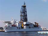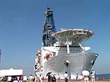 海洋研究開発機構(JAMSTEC)の地球深部探査船「ちきゅう」が2005年9月11日(日)と12日(月)に横須賀新港で一般公開されました。私はインターネットで申込をし、12日午後1時40分からの見学の連絡を受けてその時間に乗船しました。「ちきゅう」は最大稼動水深2,500mで海底下7,000mまでを掘削することが出来、巨大地震発生の謎を解くことが期待されています。