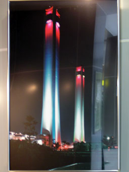 ![]() ツインタワーの夜景 (投光器群) (夜景は1階ロビーのパネルを撮影) |
