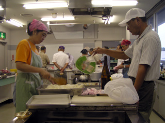 ![]() すし飯をつくる飯塚さん(左)と古田さん(勉強会G) |