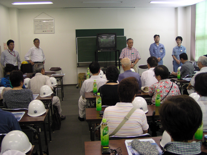 13時30分から本社の会議室で会社・工場の概要をパンフレットとビデオで説明を受け、その後2班に分かれて工場見学をしました。工場の敷地、主な建物は旧海軍工廠のものだったそうです。