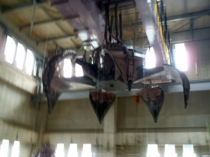 ![]() 容器包装プラスチックラインのクレーン (拡大) (貯留ピット) (供給クレーン制御室) |
