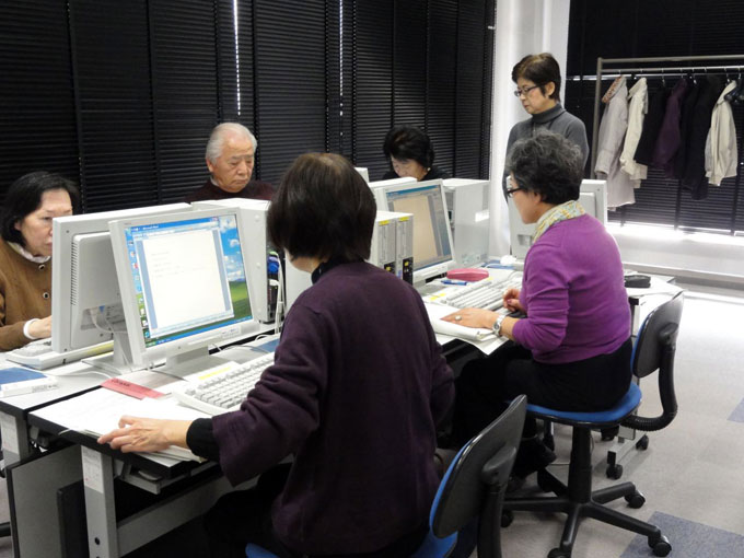 パソコンが初めての60才以上の人が対象で最大16人。講座の内容はパソコンの構成、ハードウェアとソフトウェア、マウスの基本操作、文字入力の練習、文字の大きさとフォント、インターネットの操作法、ワードでちらし作成、はがきの裏面作成、画像の取り込みなどです。