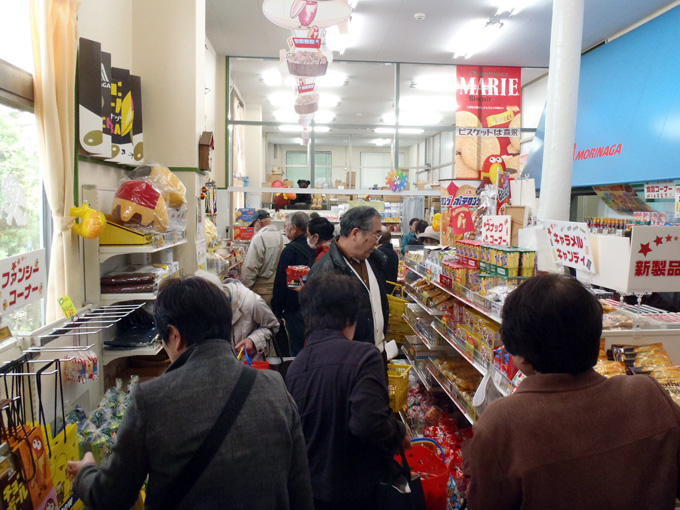 工場見学のあとお土産を頂き、森永製菓創始者の銅像の前で記念写真を撮り、売店に案内されてお土産を買いました。この売店では外部では売っていない大箱のキャラメルやチョコレートの詰め合わせパックなどがありました。