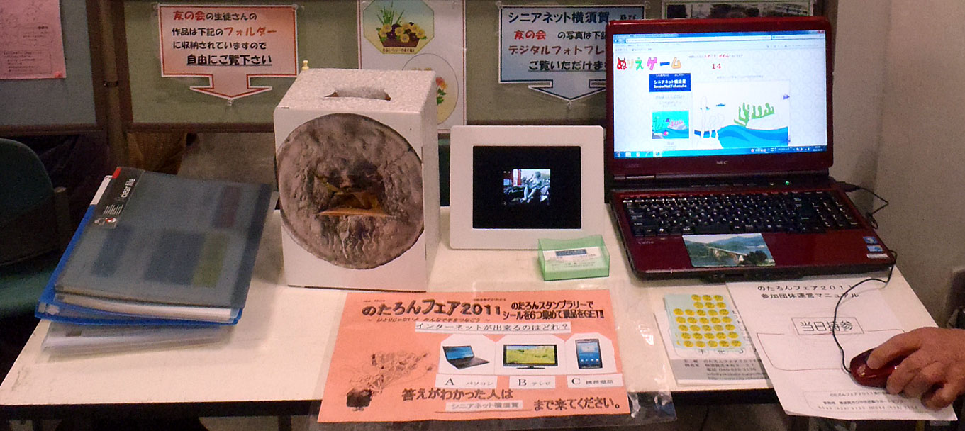 「のたろんフェア 2011」の実行委員会のメンバーに当会から3人が参加して運営を支援しました。シニアネット横須賀ではイベントグループが中心となり企画、パネル制作をし、会員全体で資料の提供、開催当日の当番をし、良いPRができました。