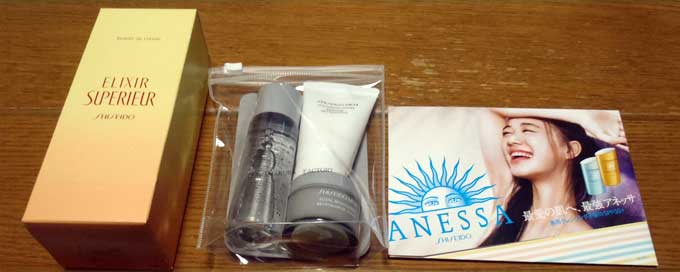 ![]() テーブル 5 (拡大) 机上に工場見学記念品 (男性の記念品、女性は旅行3点セット) |