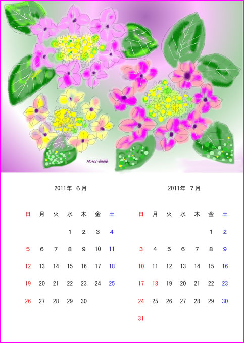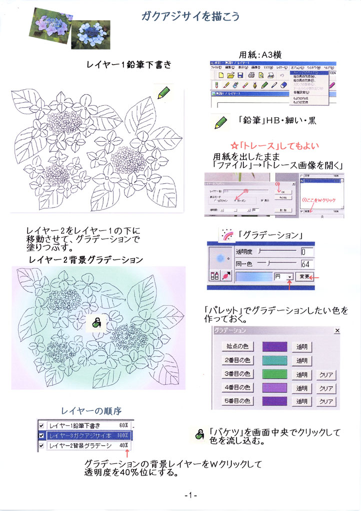 お二人の講師が親切に教えてくださったお陰でガクアジサイと富士山を描きカレンダーやはがきにして持ち帰りました。(ガクアジサイのカレンダー、富士山のはがき、テキスト表紙、テキスト P1、テキスト P2、)