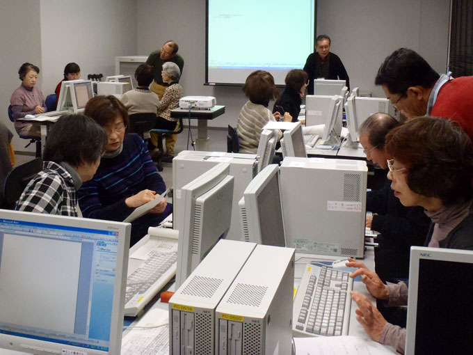 パソコンが初めての60才以上の人が対象で最大16人。講座の内容はパソコンの構成、ハードウェアとソフトウェア、マウスの基本操作、文字入力の練習、文字の大きさとフォント、インターネットの操作法、ワードでちらし作成、はがきの裏面作成、画像の取り込みなどです。