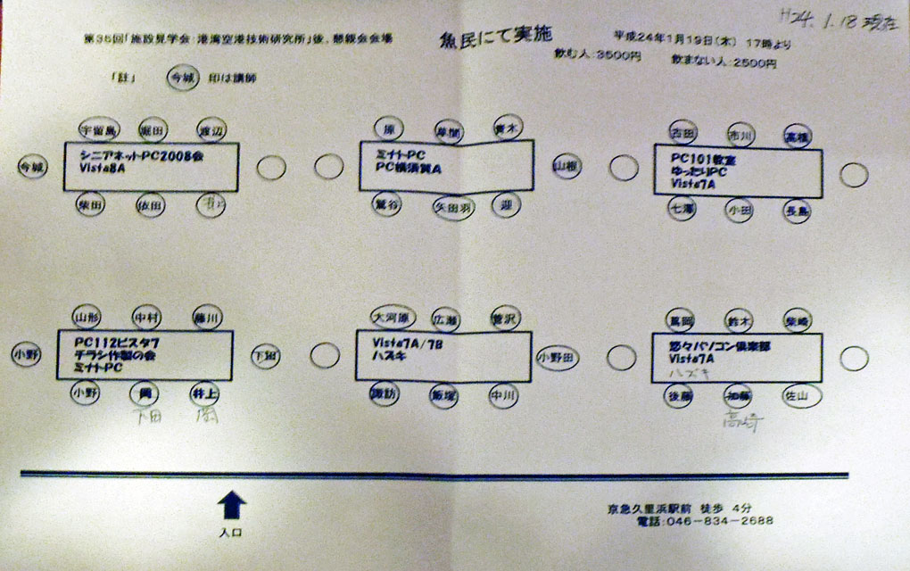 ![]() 幹事さんが用意した座席表 (拡大) |