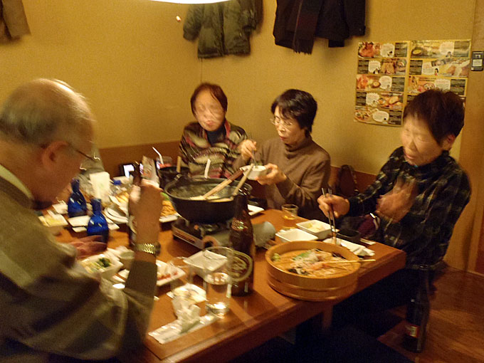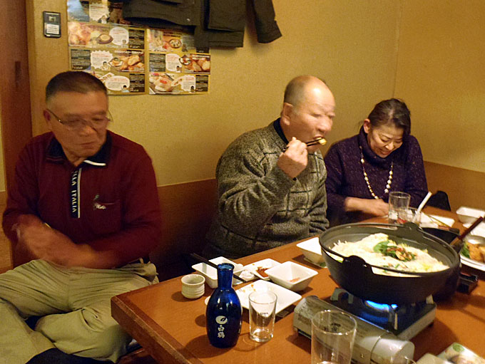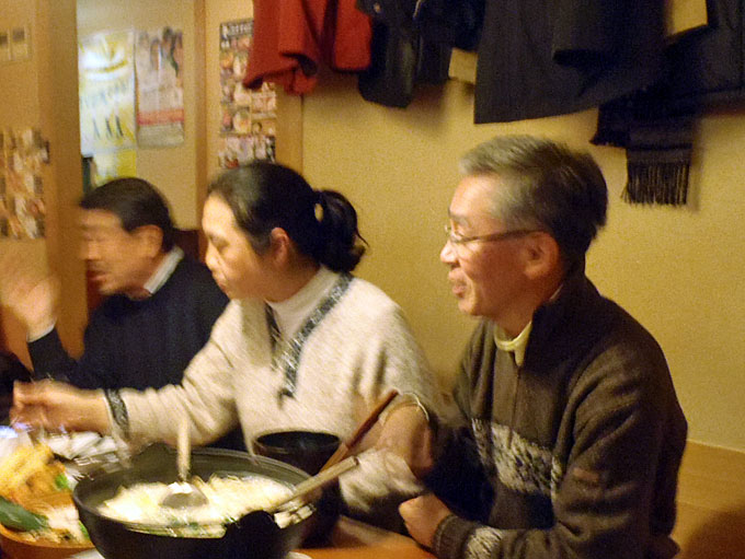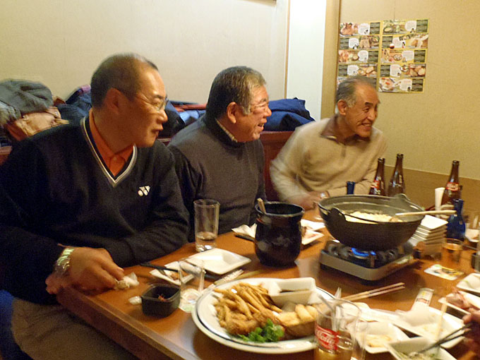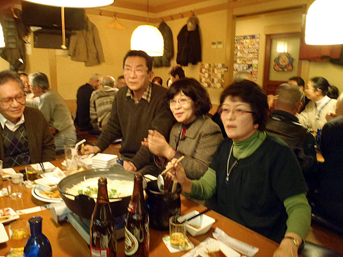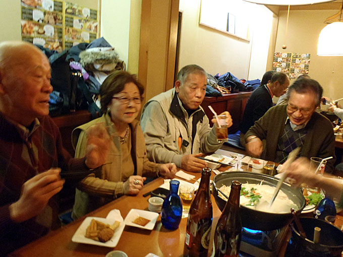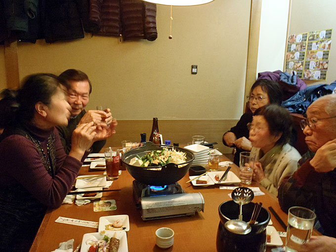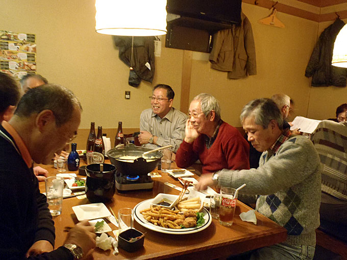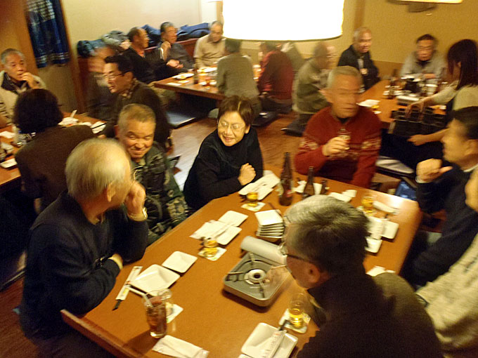 港湾空港技術研究所を見学した後、追浜駅東口の魚民で懇親会をしました。もちろん自由参加ですが 40人が参加しました。寒い日の見学会ですから身体は冷え切っていました。熱いお酒と鍋料理が美味しく、時が経つのを忘れて話が弾み楽しいひと時を過ごしました 。