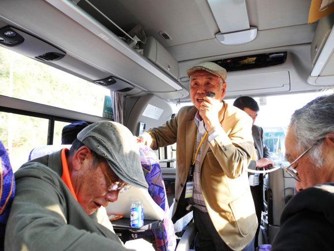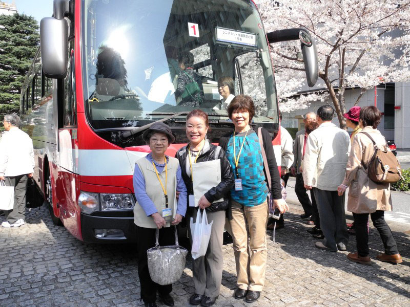帰路は運転手さんのサービスで東京スカイツリーの間近を通り、墨田公園の桜を見てから高速に入りました。帰りの車中は懇親会ということでお酒やお菓子類が沢山配られ楽しく有意義な一日でした。1号車はカラオケとお話で盛り上がったと後で聴きました。