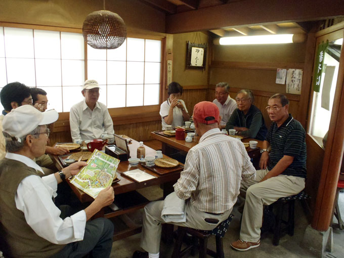 2012年9月26日(水)の午前に武蔵野市にあるNTT技術史料館を見学した後タンシーに分乗して調布市の深大寺に向かい玉乃屋で十割そばを食しました。目の前に神代植物公園の深大寺門があり、会員の一人が園長と知り合いということで園長自ら出迎えてくださり、園内を案内していただきました。