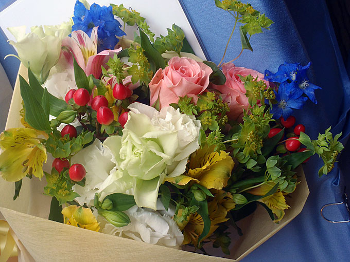 ![]() 井上さんへ花束を贈る飯塚さん (拡大) (別写真)