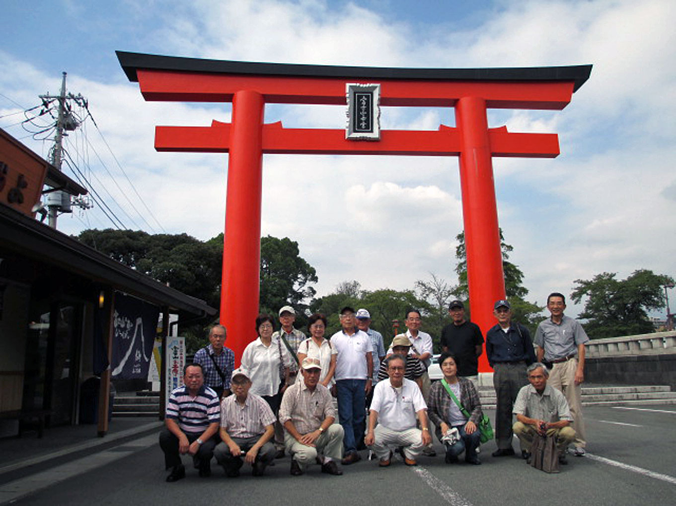 ![]() 富士山本宮鳥居の前で記念写真 (拡大)