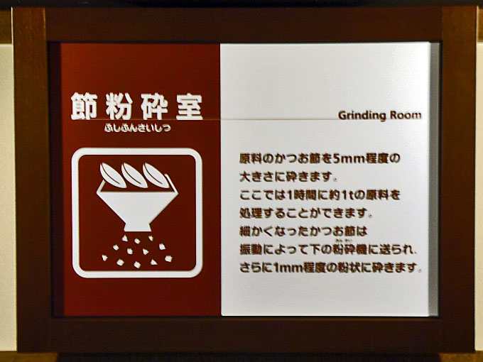 ![]() かつお節削り体験室 (拡大) 窓の向うは鰹節粉砕機 |