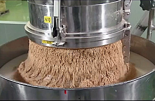「ほんだし」一口メモ● かつお節(荒節) 1日かけて解凍し約1時間煮込んだ後に1〜2週間燻す。かつをの煮汁を煮詰めたエキスもほんだしの原材料として使用する。 香り、コク・味わいそれぞれに優れた3種のかつお節をブレンドして使用。普通の深燻し、極深燻し、浅燻し。燻す薪はナラ。 ● 「ほんだし」の原材料 調味料(アミノ酸等)、食塩、砂糖類(砂糖、乳糖)、風味原料(かつおぶし粉末、かつおエキス)、酵母エキス、小麦たん白発酵調味料。(成分の多い順に記載されている) (写真) ● 顆粒化 原材料を混煉りし細かな穴から押し出し(押出造粒機)、乾燥させて顆粒状に仕上げる。 (写真2) 備考 上の写真3カットは次の「ほんだし」シアターからコピーしたものです。 ● Webで工場見学 「ほんだし」シアター 〜カツオから「ほんだし」ができるまで〜 |