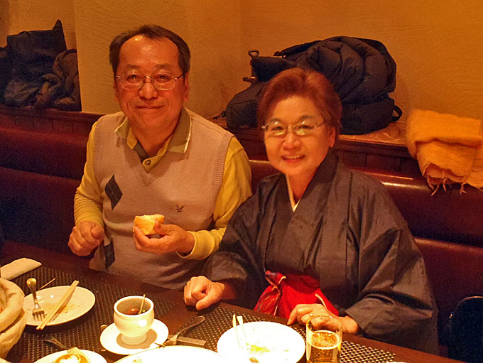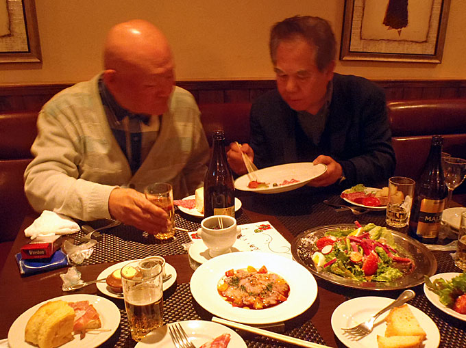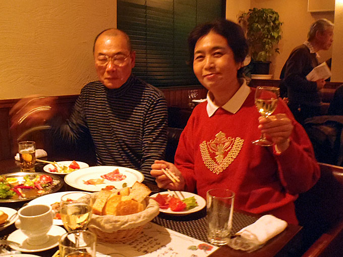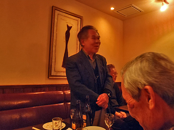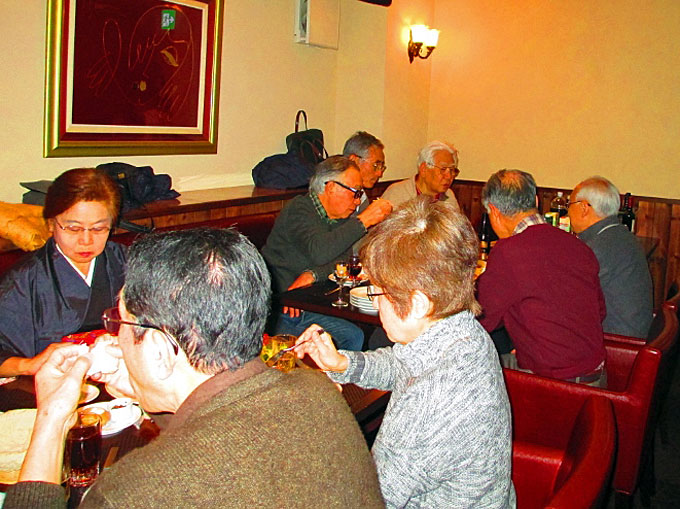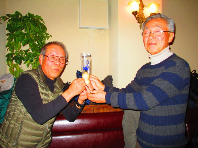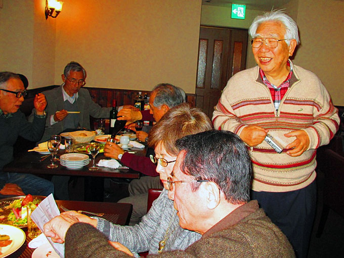 2016年1月14日(木)の午後3時から産業交流プラザで月例会を行ってから大滝町の仏蘭西料理店「花野家」に場所を移して新年会を開催しました。 仏蘭西料理店での新年会は初めてで美味しい料理とお酒に加えて会員のマジック、会員が育てた瓢箪のプレゼントなどがあり楽しい新年会でした。今年度の入会者3人と退会者1人からご挨拶をいただきました。 参加者は会友1人、会員18人でした。 |