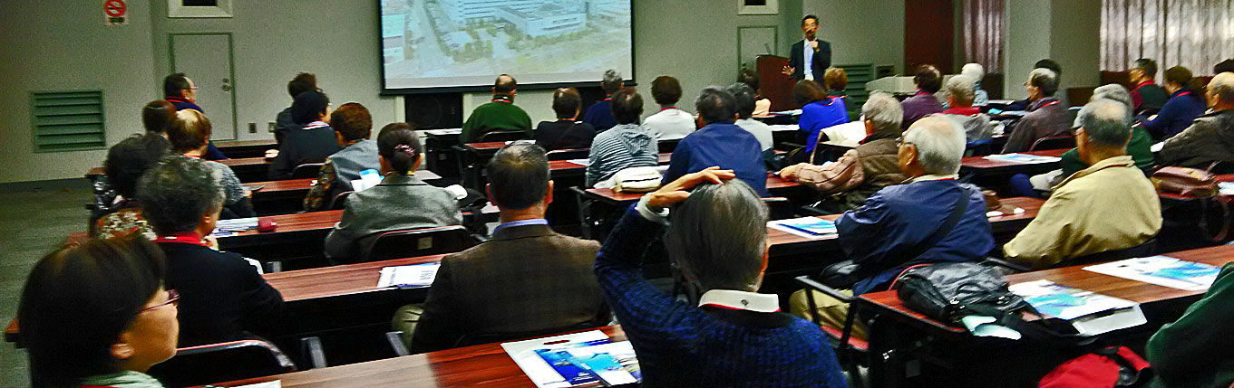 職員の方から施設研究内容などの説明をお聞きいたしました。沿革の説明では三浦半島の歴史、SNYの設立時期など交えての時系列に解かりやすい内容でした