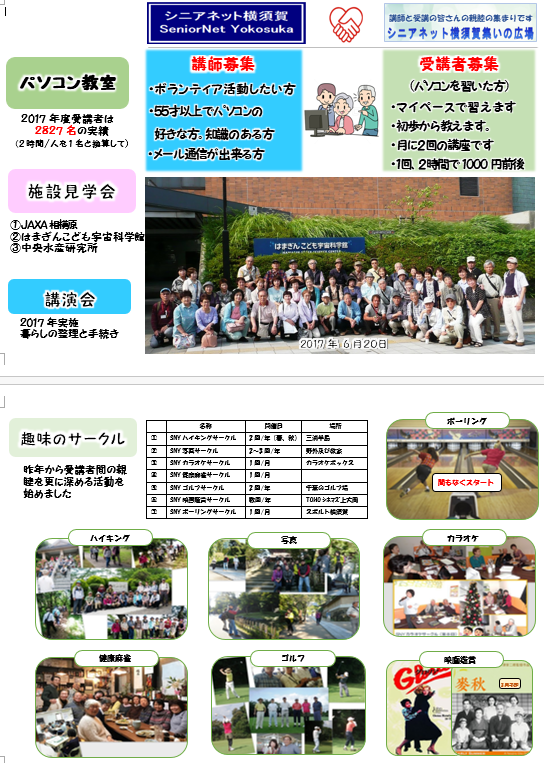 シニアネット横須賀では行事グループが中心となり企画、パネル制作をし、会員が交代で開催当日の当番をしました。