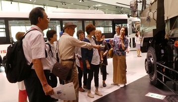 6月4日、藤沢市の「いすゞプラザ」の見学に行ってまいりました 湘南台駅に集合し、駅前からはいすゞの大型観光バス仕様の送迎バスで「いすゞプラザ」まで案内をしていただきました。 高台にあり道を挟んで向かいには藤沢工場があります