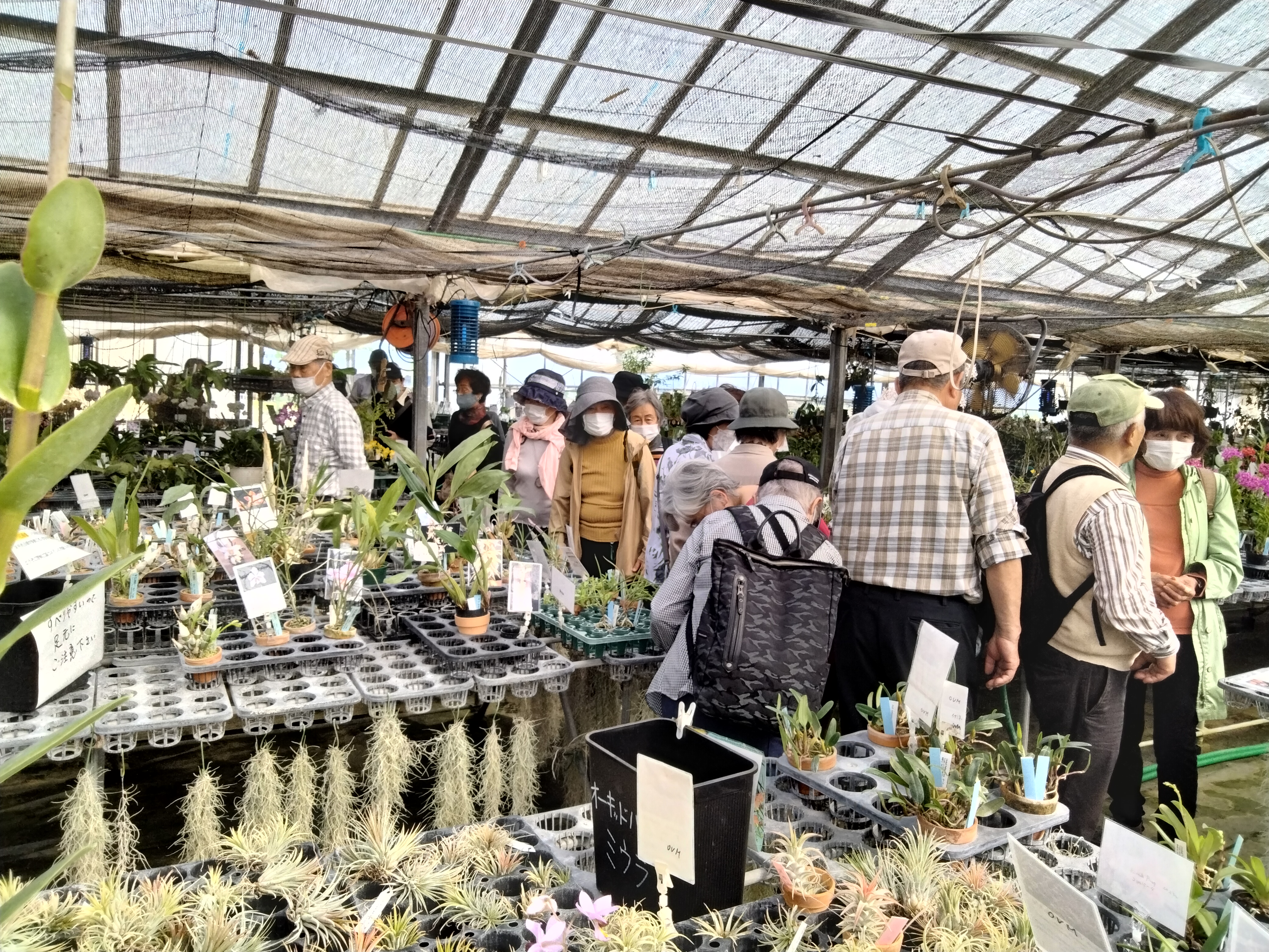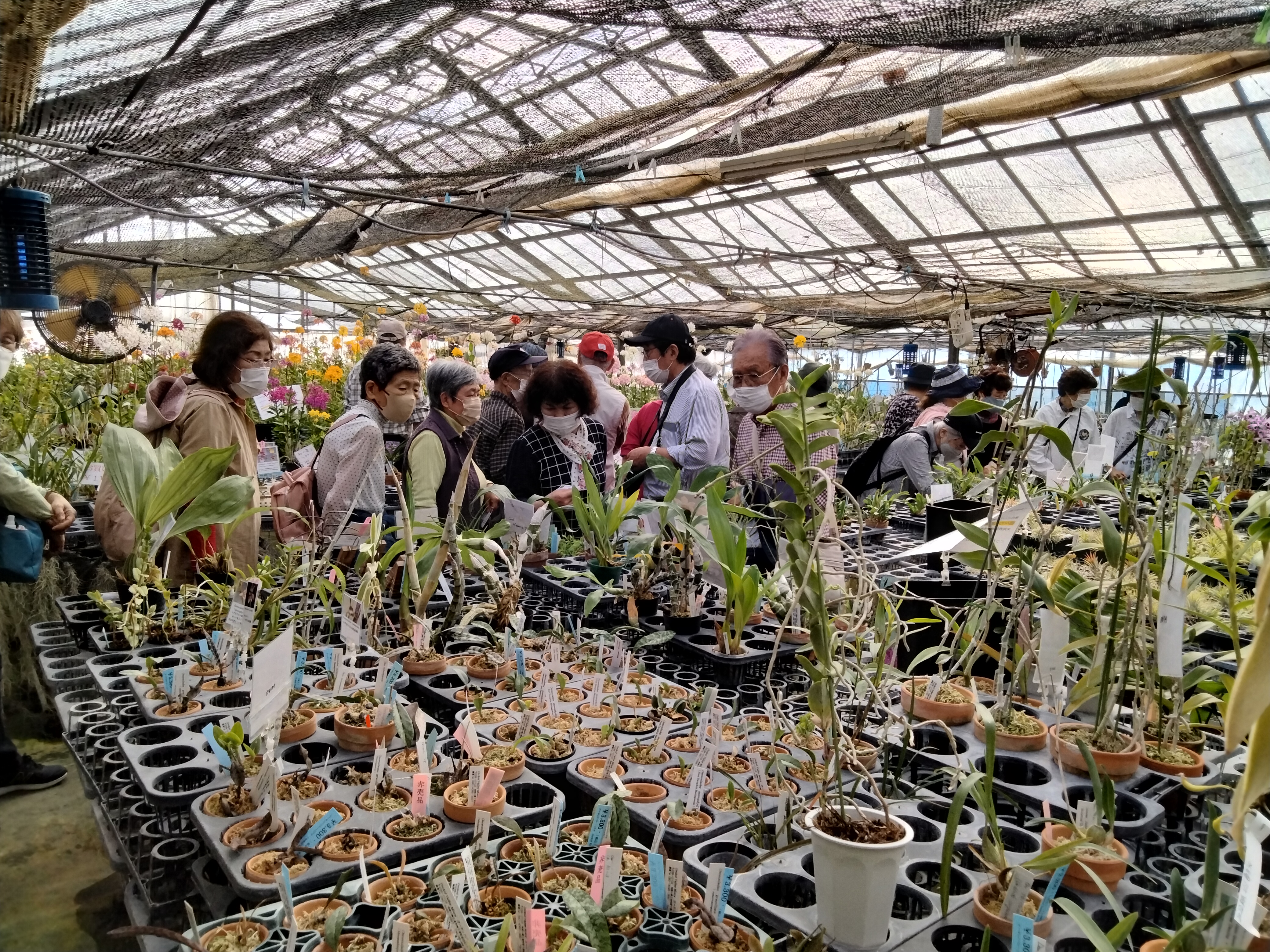 3月24日(金)三浦市にあるオーキッドバレーミウラを見学してきました。 毎年、衣笠の「はまゆう会館」で洋蘭展に出店している蘭の農園です 三崎口駅からバスで引橋へそこからゆっくり歩いて20分ほどでしょうか 名前の通り深い谷にありました 集合写真を撮った後 園主さんの稲嶺さんの ラン栽培の興味深いお話をお聞きいたしました ランの農園を見学するのは皆さん初めての方が多く驚くことがたくさんのお話でした それから温室の中を案内をしていただきいろいろなランを見せていただきました たくさんのランの花が咲いている光景は圧巻でした |
